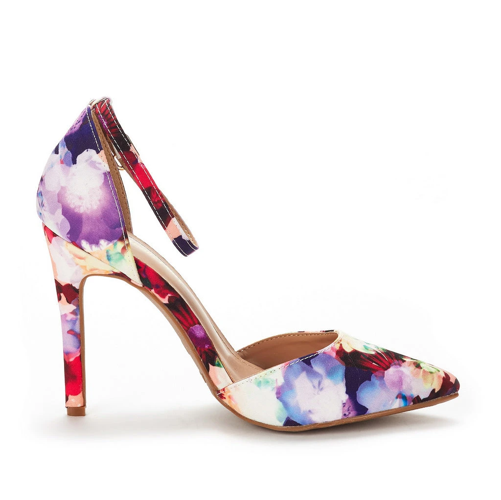 - Pointed toe stiletto heels with ankle strap