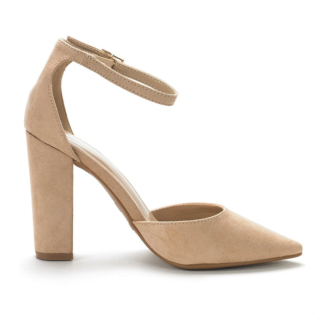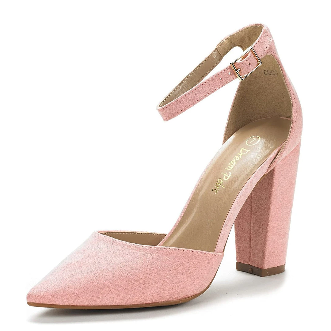 Go texture crazy with these pointed-toe chunky high heel pumps. Stand tall and relax into the elegant and sophisticated fumes radiating from our classy pumps. In gold, a textured glittering alligator-like texture wins. In suede, the smooth pink fabric takes the cake. In all colors, shades, and textures expect a simple ankle strap buckle that’s anti-chafing delicate but sturdy enough to help you stand your ground. A classic insole padded with extra latex is our signature and we can’t wait for you to try this.