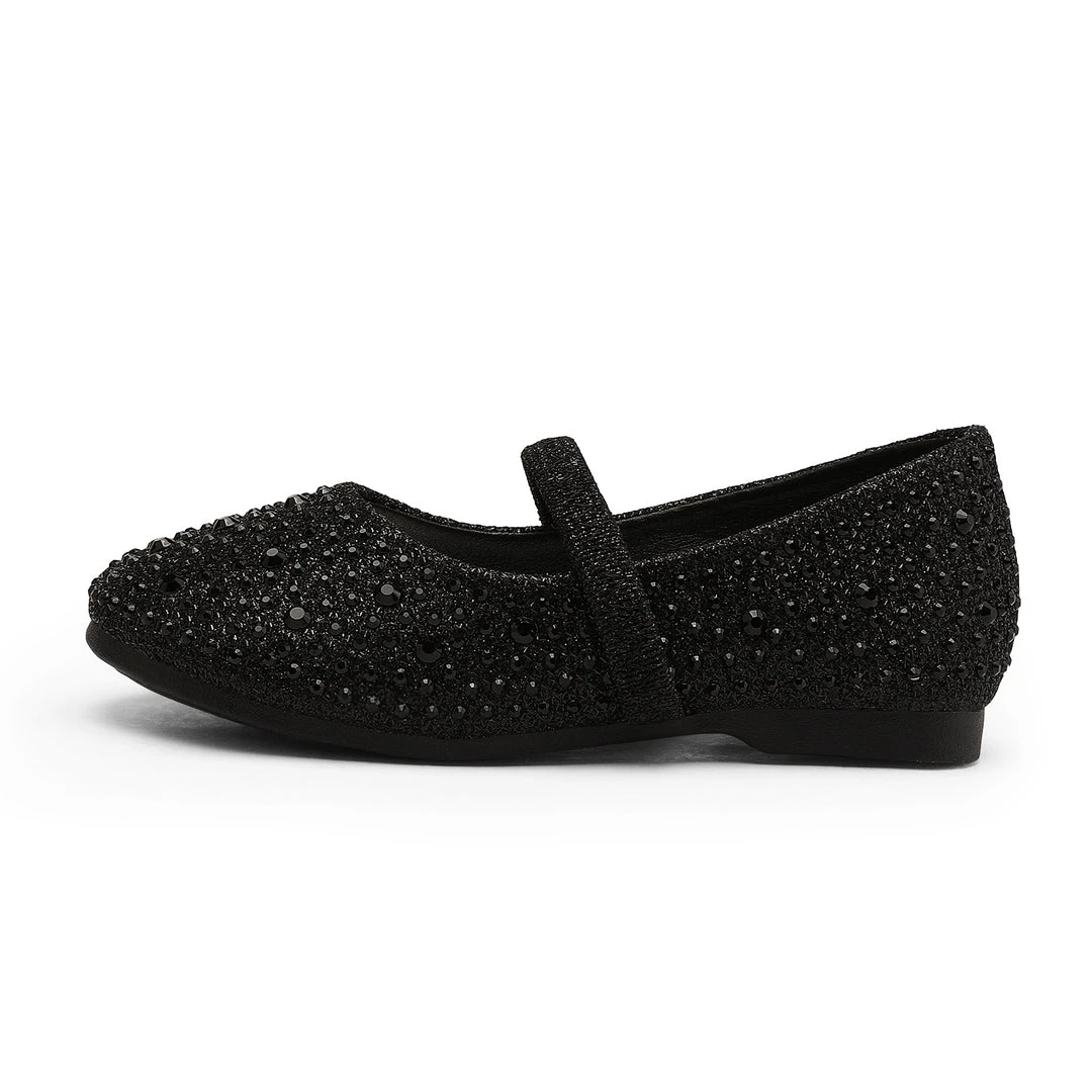 Shine bright like a little diamond-soon-to-be-star. Incredibly dazzling lightweight and breathable girls mary jane rhinestone flats. The pearl and rhinestone strap serves as the perfect embellishment. The lightly padded footbed is comfort redefined. Make purchasing these flats a priority for relaxation and style.