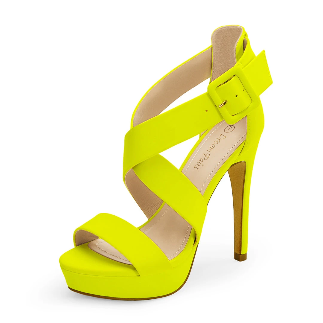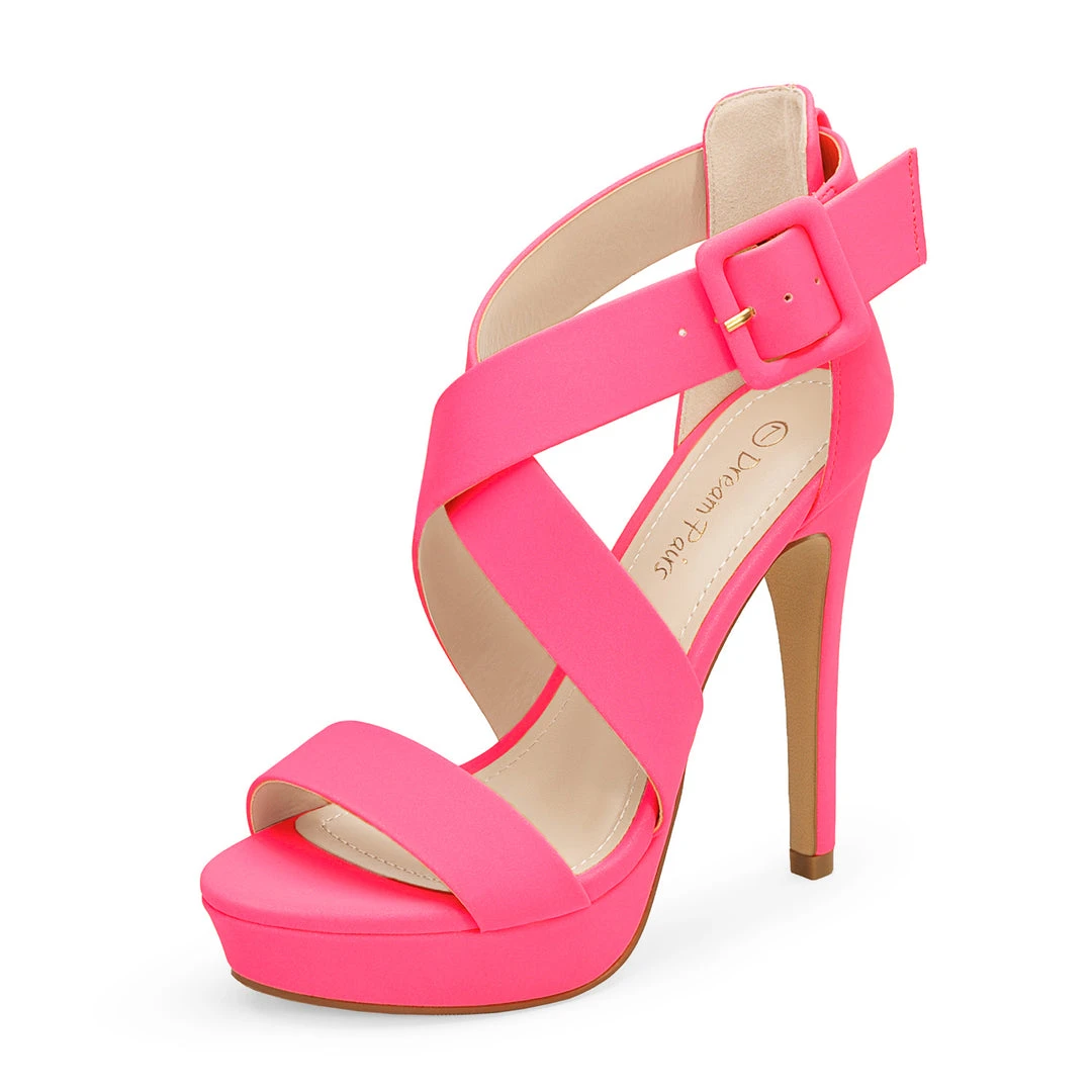Elevate the occasion with these Dream Pairs women’s open-toe strappy stiletto sandals. A suede sole pairs with a latex padded insole to deliver premium comfort. The PVC outsole is designed to be lightweight, while a crossed strap design and adjustable buckle make it easy to secure the perfect fit for you.