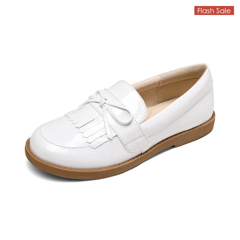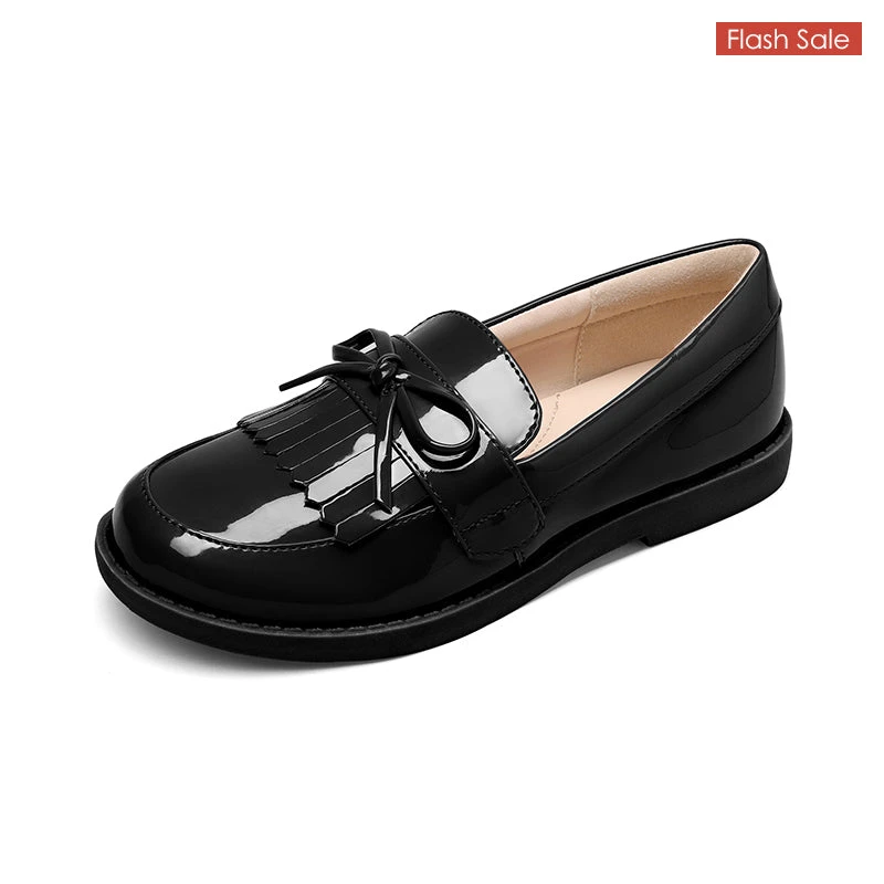 - Smooth patent leather upper with bowknot and tassel decoration makes these girls’ dress flats classic, adorable, and elegant