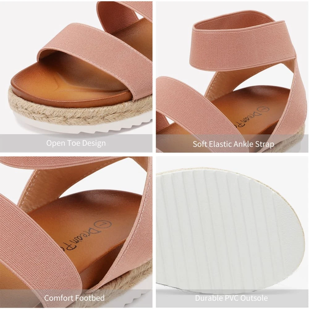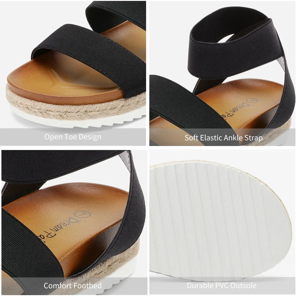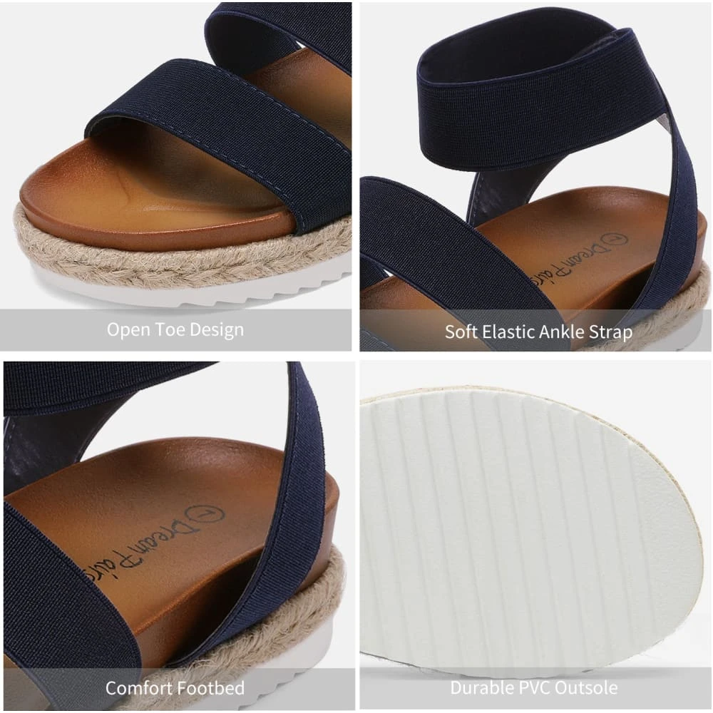 Durable, comfortable, and chic espadrille flatform wedges. These ankle strap espadrille flatform sandals are the look of the night and the morning. Versatile and comfortable shoe wear. That’s the name of the game and we can’t get enough of the options afforded to the wearer of these sandals. A summer dress with your favorite sunny hat, or a flowy maxi skirt. Plush and adjustable with elastic straps and a cushioned PU insole.