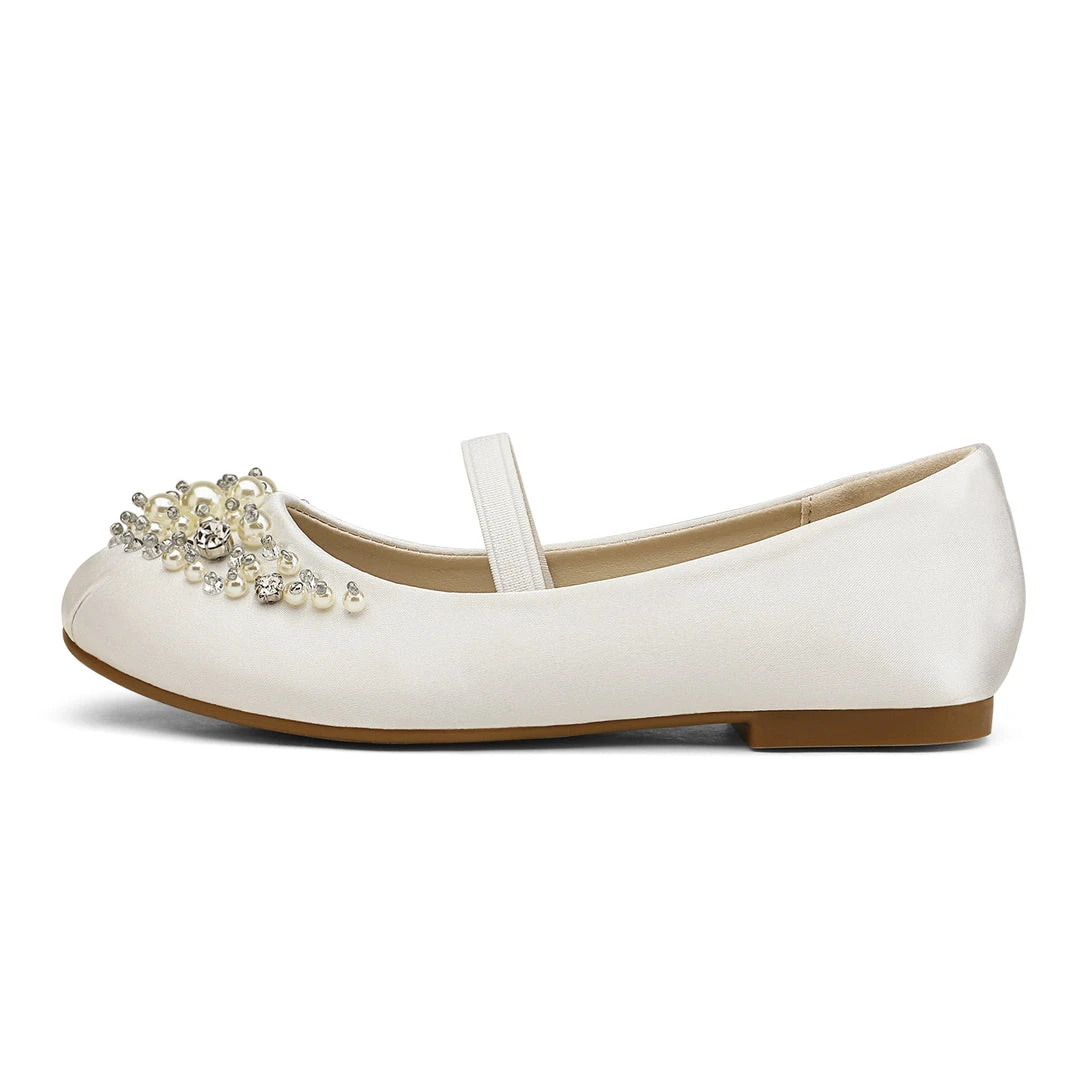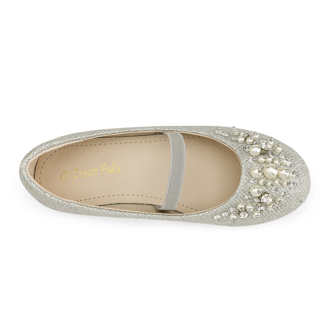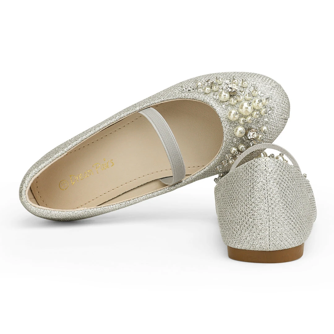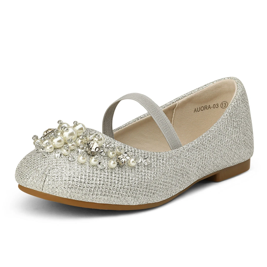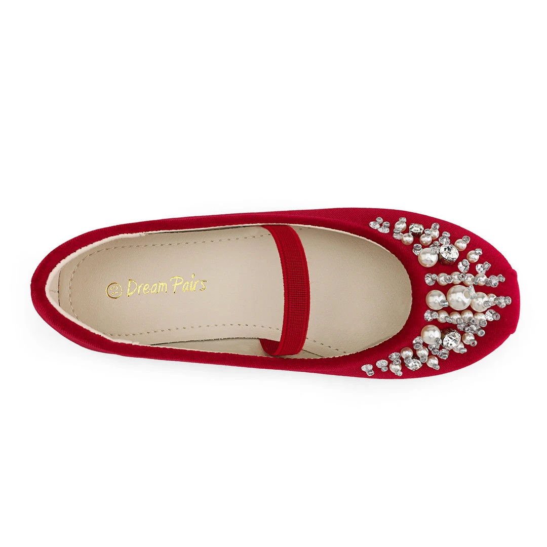 Bedazzled and glorious girls. Mary Jane ballerina flat shoes. We adore this embellishment against an ivory suede. For added excitement grab a pair in pink or blue. We’ve decided to make shoes that can fit into the fashion needs of every little human while making safety a priority with a TPR outsole outfitted for premium grip and control. Feel confident buying our girls mary jane ballerina flats knowing that protection is at the forefront of our minds.
