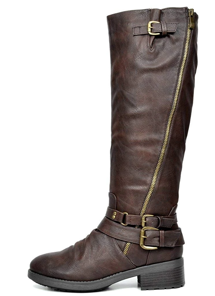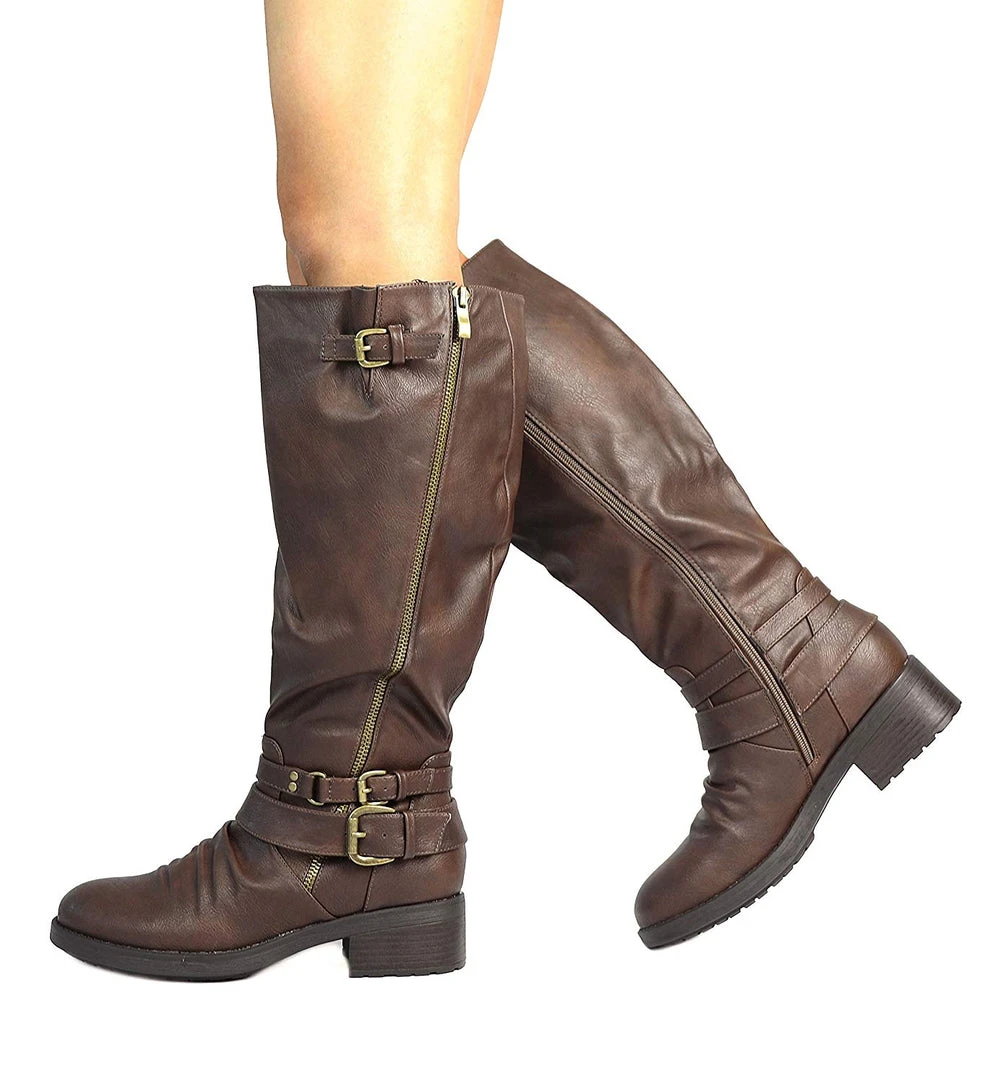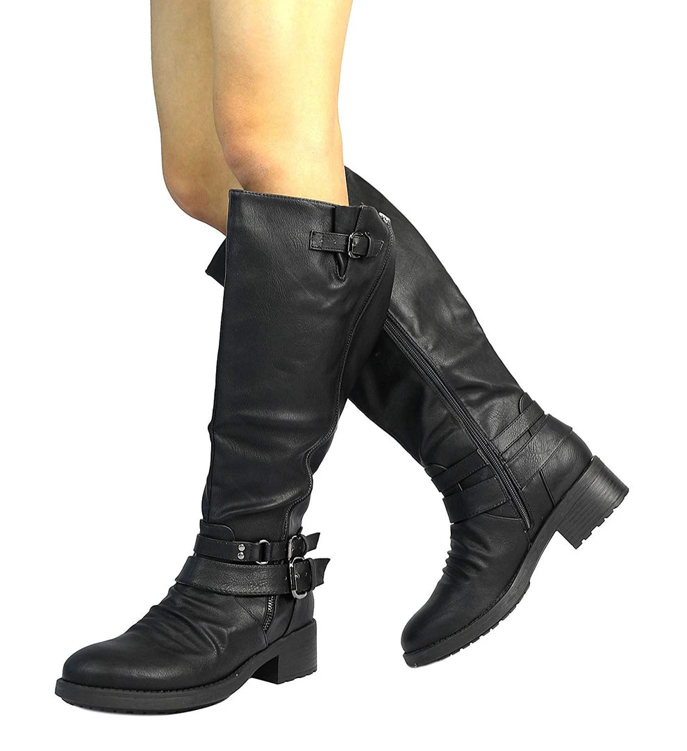 These are knee-high riding boots with an elegant classic design and a standout reputation for style. Wait for these knee-high faux fur boots to come out as the newest feature in your closet. Take a second to drool over the buckle straps and zipper on this boot. Then take a whirl in our thermoplastic elastomers sole and see for yourself.