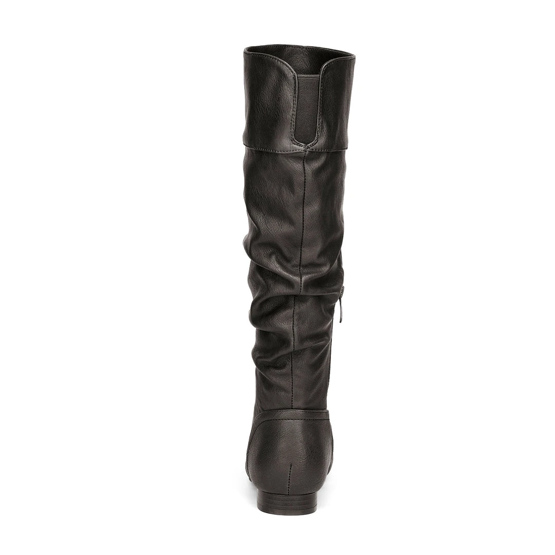 Enjoy a bit of crunch in the shaft area and take these boots out for a whirl. The scrunchy look of our favorite boots are enough to make the world go wild. We certainly go wild for them. Our favorite thing to pair these boots with is a big fluffy winter scarf and jeans. Women’s flat knee high boots are fun, playful and always in style. Grab yourself a pair of our favorite guilty pleasure today.
