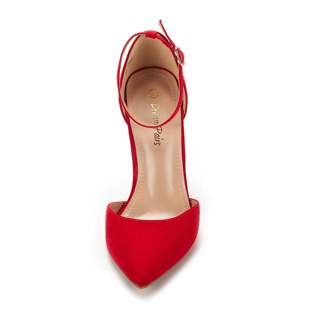 These classy stiletto high heel pumps have a d’Orsay silhouette with a pointed toe and are finished with an ankle strap. Designed with a super flattering stiletto heel that can instantly transform your outfit from day to night.