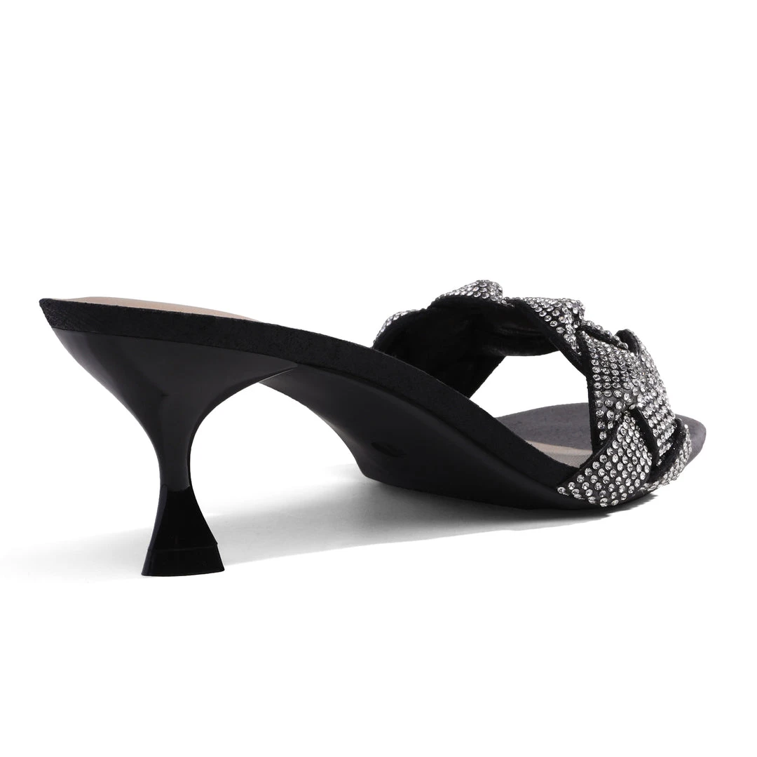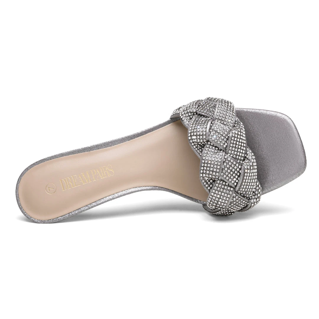 Brighten up long summer days with these rhinestone kitten heel pump sandals. A shiny braided strap and stable kitten heels for a simple but chic look. A PU-covered latex insole for extra cushion and support. Pair with a cotton slip dress for an easy summer look. It’s perfect for any party, evening, or family event and if you don’t have shoes that are prone to perfection, then why bother?