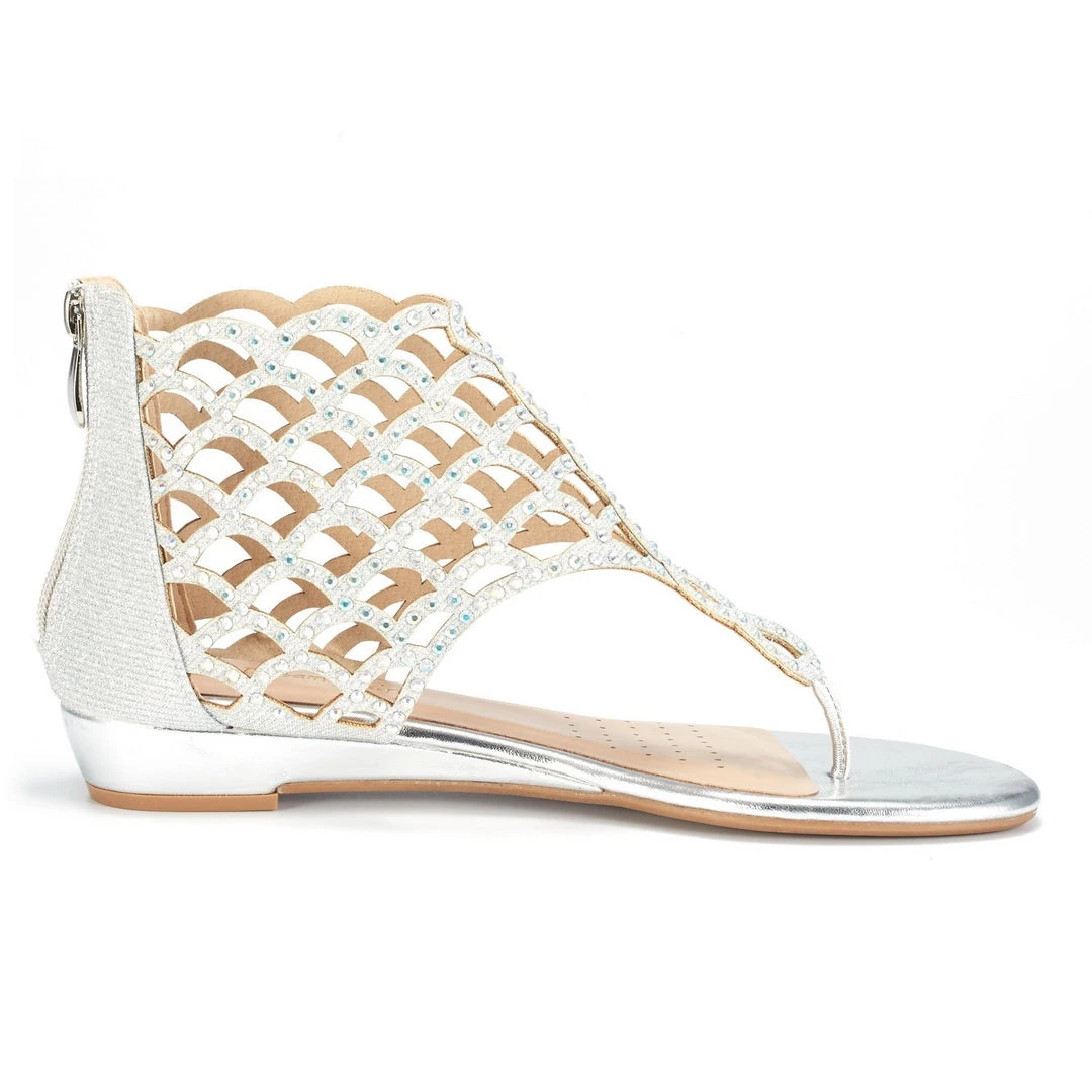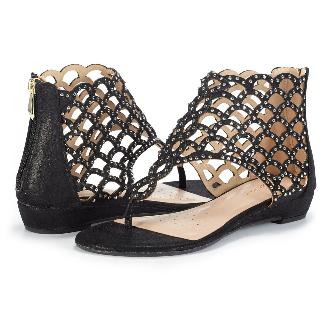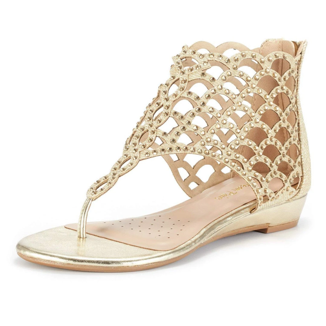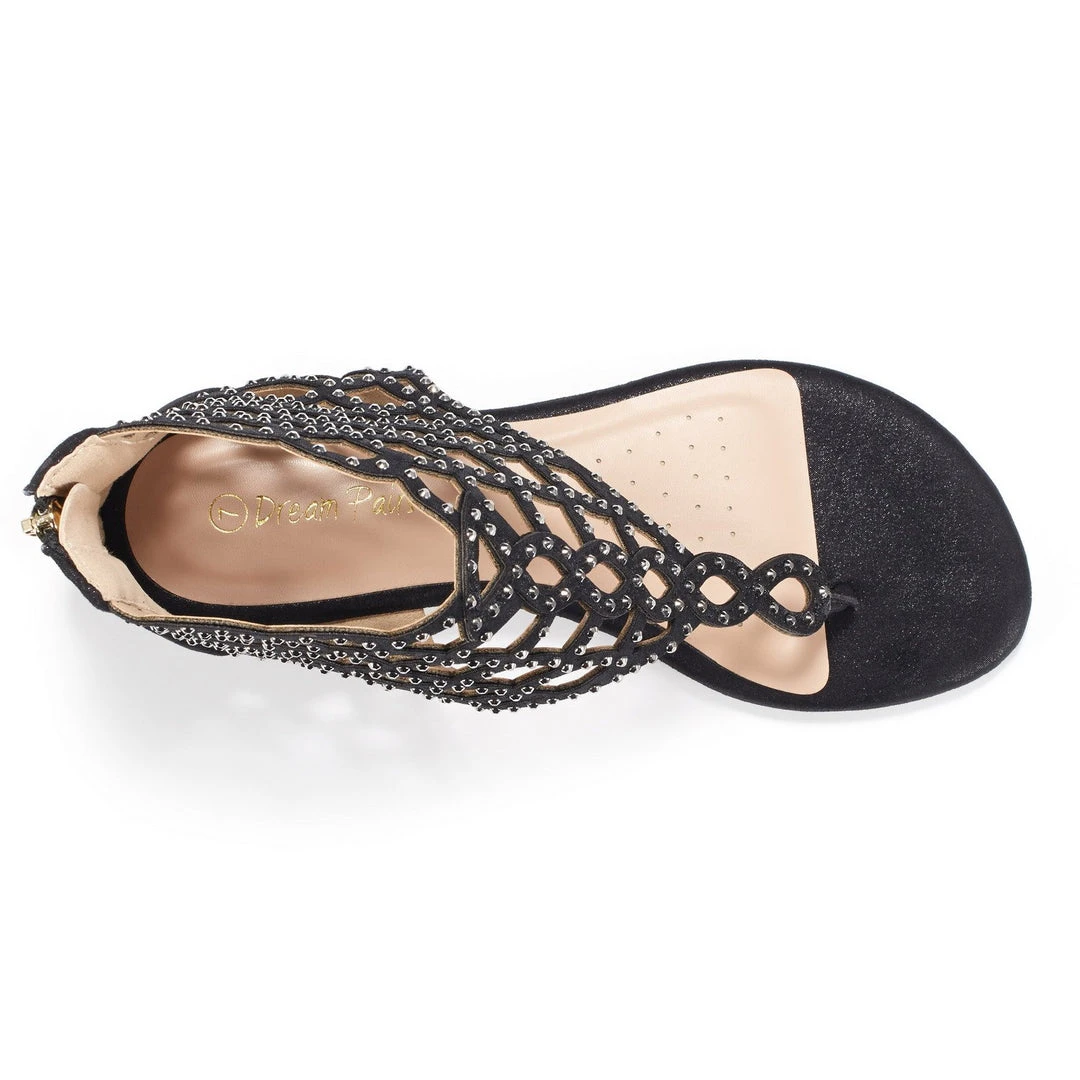 Queenly, princess, royalty rhinestone flat sandals. Breathtakingly stylish with awe-inspiring comfort. Delight in a back zipper closure that easily slips on and off while remaining secure. The insole is padded with faux leather for a delightful feel and the thong-style construction is anti-chafing and anti-hatred. Positive vibes and indescribable comfort.